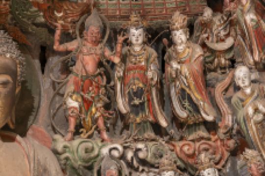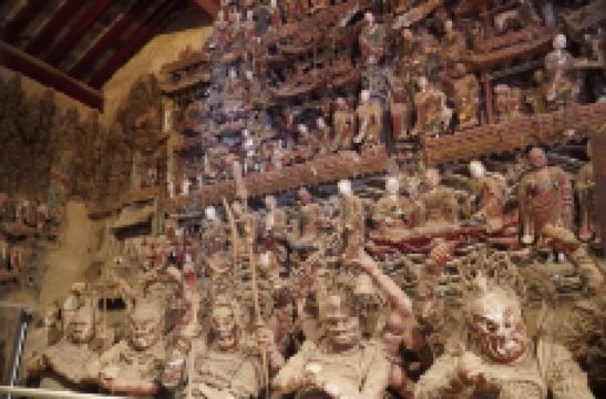 蓝田水陆庵壁塑博物馆位于蓝田县城东南约10公里的王顺山下。水陆庵的水陆殿明嘉靖四十二年(公元1563年)至明隆庆元年(公元1567年)修建,殿内13面墙壁上精雕细塑着大量泥制彩绘塑像、壁塑、悬塑,总计3000多尊,其造型、身姿、表情、服饰等繁复各异。它是陕西省年代久、保存完整的彩绘泥塑群,泥塑内容、结构和彩绘非常特殊,保存了多种历史艺术文化信息,具有极高的艺术、历史和佛教研究价值。为六朝名刹,以保存古代精巧罕见的彩塑而闻名,被誉为“中国的第二个敦煌”。