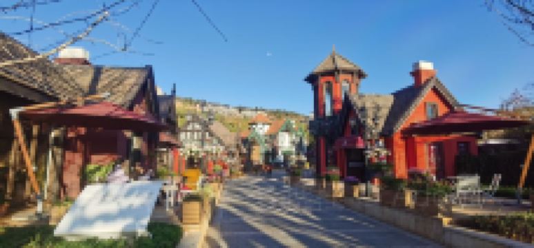 太阳山市集内有欧式建筑,沿街有儿童乐园、商场和酒店等,夜幕时分,灯光下的市集显得格外漂亮,逛一逛市集,再品尝当地的美食,非常有趣。