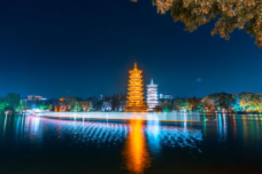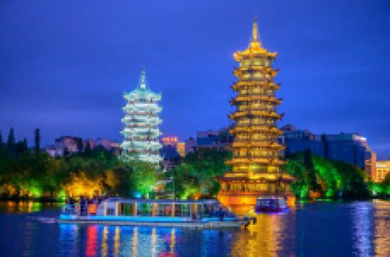亮点及特色:夜游四湖是我景区夜游之精品线路,可乘船游览桂林市核心的风景带,体验能与威尼斯水城相媲美的环城水系。沿途可欣赏杉湖、榕湖、桂湖、木龙湖的诸多名胜景观,纵览名桥名山;观赏传承千年的鱼鹰捕鱼、瑶乡风情、半筝落月精品演艺,纵享璀璨多彩的山水夜桂林。