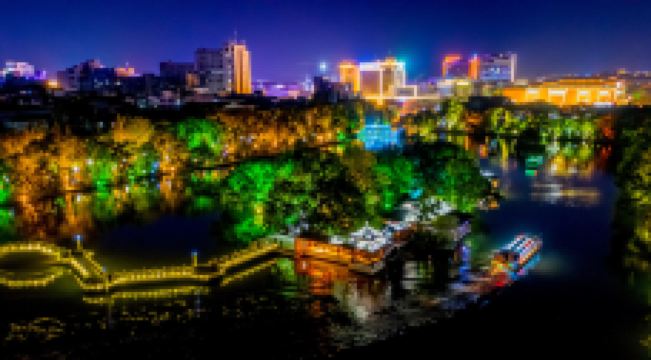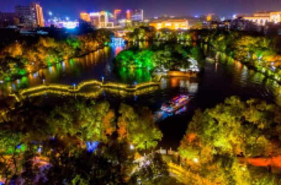 乘船夜游四湖可观赏到杉湖、榕湖、桂湖、木龙湖的璀璨夜景风光,以及有千年历史的鱼鹰捕鱼等经典演艺。