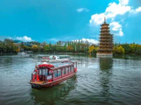 亮点及特色:乘船日游桂林市区核心的环城风景带,可近距离欣赏如诗如画的山水自然风光,沿途象鼻山、伏波山、叠彩山、七星山、宝积山、老人山等诸多名山依次呈现;形态各异的中外名桥、大气典雅的宝塔楼阁妆点着古老的山水名城,让游客真实感受到桂林山水甲天下的风采。