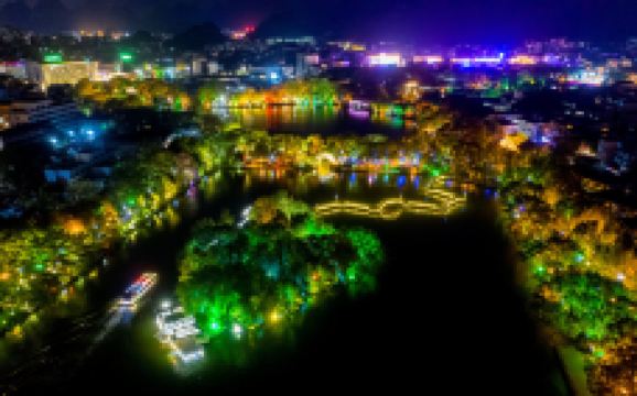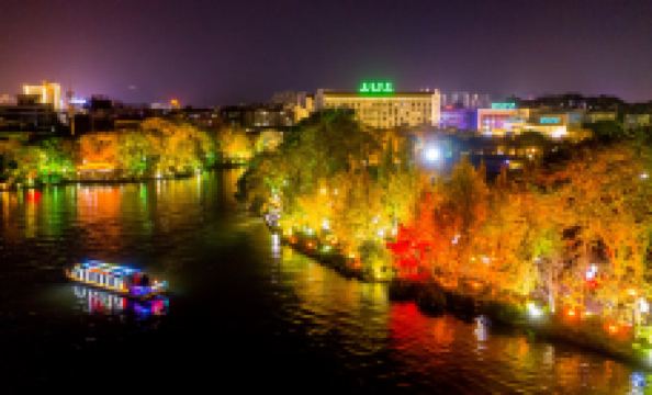 乘船夜游桂林两江四湖景区可观赏到杉湖、榕湖、桂湖、木龙湖、漓江、桃花江市内段的山水风光,游览桂林市核心的风景带,体验能与威尼斯水城相媲美的环城水系。
