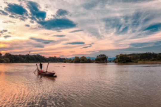 香零山在市区城东五里潇水河心,南北宽15米,东西长25米,高出水面12米,是一座岩山小岛。旧产香草闻名于世,古称零陵郡,即以此山名。香零山为天然石矶结构,地处中流,随潇水水势而展现不同的风光,势浩荡则如大海中之一小舟,水势弱小则岛亭昭然挺立。若雨后日出,烟锁山脚,雾雨朦胧,往来舟楫,若隐若现,给人一种烟波浩渺的意境,因而有“香零烟雨”之称,为永州八景之一。