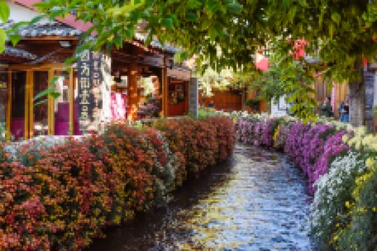 四方街位于丽江古城中心,形状为长方形,明清时期,这里是滇西北商贸枢纽、茶马古道上的交易中心。如今这里依然是丽江古城的闹市,街上店铺、餐厅、酒吧密布,游人如潮,是古城内热闹的地标。