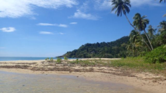 这是一个有名的海滩,沙滩为白色,上面有很多椰子树,在这里,人们既可以露营,还可以欣赏夕阳美景,非常惬意。