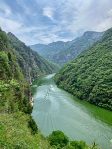 青天河水天上来,奔流百里不复徘徊。这里河水碧波荡漾、两岸青山环绕;峡谷内幽静清雅、山野间清泉凛冽,偶有野鸭、猕猴出没其中,为这清静又添了几分动感活力。青天河内可谓是三步一泉,五步一瀑,青山绕碧水,绿树掩古寺,飞泉流瀑,如诗如画,既有江南水乡的淡雅,又有北国田园风光的气魄,一点也不负“北方三峡”的称号。