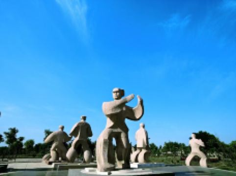 这里有令人敬仰的太极拳历代宗师纪念馆,有响誉国内外的陈家沟武术馆,有充满传奇色彩的杨露禅学拳处。历代宗师纪念馆前面塑有太极拳鼻祖陈王廷的铜像以及历代太极拳宗师的碑碣。