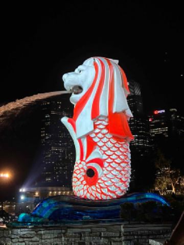 鱼尾狮公园白天和晚上是两种味道,建议接近傍晚时分过来,这样既可以看到白天的样子,又可以接下去欣赏夜晚的美景,周边华灯初上,新加坡美丽的夜景都能看见。