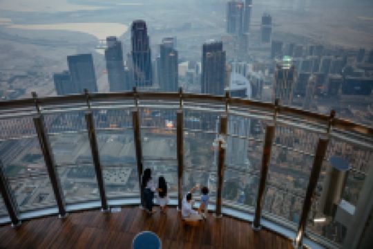 乘坐双层电梯以每秒 10 米的速度直接到达 124 层! 不到 60 秒,电梯就到达观景台,设有室外露台。 欣赏周围酋长国的壮丽景色,欣赏令人惊叹的 360 度全景。 了解有关这一建筑奇迹背后的设计和技术的所有知识,同时使用甲板上的望远镜欣赏这座城市的现代和历史景观。