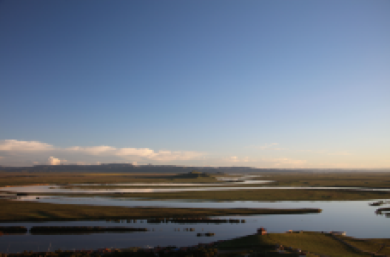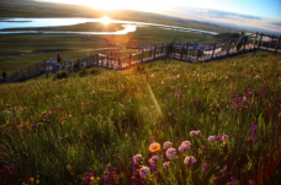 黄河在四川若尔盖县唐克乡与白河汇合,形成了壮美的黄河九曲第一湾,这里能观赏到奇特且壮丽的自然景观,也是摄影师钟爱的取景地。想要观赏到黄河九曲第一湾,可以拾级而上或是乘坐电梯,然后可以到达观景台。观景台上的景色会让你忘却一切烦恼,这也是观赏日落的佳地点。曲折蜿蜒的黄河在落日的余晖下分外妖娆,仿佛“落霞与弧鹜齐飞,秋水共长天一色”。