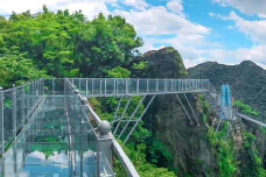 天下第一福鼎,是人类祈福文化的发源地,适合祈福;绝壁天梯玻璃栈道,为全透明玻璃组建,长200米,垂直高度180米,适合敢于挑战的你,在刺激与冒险中感受自然美景。丛林穿越,在茂密的树林中,越过重重机关险阻,到达目的地,在惊险中与大自然来一次亲密接触。