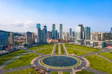 位于大连南部海滨的星海广场是这座城市的地标,比两个天安门广场还大的面积带给人们感官上的冲击,这里不仅拥有美丽的海景和迷人的夜景,而且灯塔、雕塑、海堤甚至周围林立的高楼都是拍照留影的背景。整座广场呈椭圆形,贯穿广场南北的中央大道两侧绿草如茵,航标石柱灯一线排开直通大海。广场中心遍地的红色大理石上刻着天干地支、24节气和12生肖。广场的南端还有巨型城雕,地面有一条长长的千人足迹浮雕。此外,你还能看到竞赛中的运动员、滑旱冰的孩子等各种姿态的人物雕塑,以及环绕着广场的大型音乐喷泉。在重大节假日时还可以看到英姿飒爽的女骑警骑着骏马巡逻,而夏季的广场则成为盛大的国际啤酒节举办地,摇身变成了狂欢的胜地。每年的7月底8月初,会在广场上举办一年一届的中国国际啤酒节,届时会有各大酒商以及各地的游客前来品鉴。