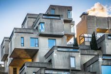 位于圣劳伦斯河畔的"Habitat 67"是蒙城最古怪的建筑,无论是从外观上,还是从建筑手法上,都堪称空前绝后!这个名为“67民居”的建筑是由加拿大以色列建筑师沙夫迪1967年所设计的。沙夫迪1938年生于以色列海法,早年在以色列完成了他的基础教育,于1955年迁居加拿大,毕业于蒙城的麦吉尔(MiGill)大学建筑。
