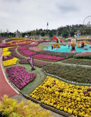 人们登上音乐·百花谷-观景台,可以俯瞰音乐百花谷景区,各色各样的鲜花,音乐长廊等景观,尽收眼底。