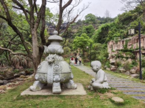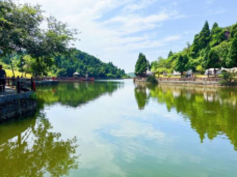 又有流水声如琴似的仙乐溪、踏音溪、百乐溪、风景如画的玉笛湖、玉琴湖。区内还有有惊无险的水上晃桥、水上漂桥、悬崖飞渡、林中秋千、滚筒等娱乐设施。现景区内长年有歌舞杂技表演为游人助兴。