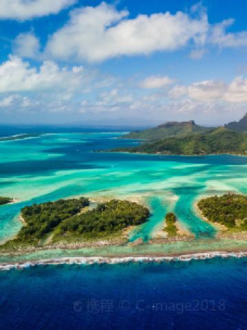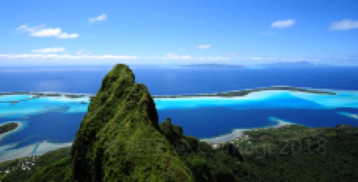 波拉波拉岛位于南太平洋法属玻利尼西亚社会群岛,被人称为“太平洋上的明珠”,是社会群岛上非常美的岛屿之一。这里有因火山而形成的泻湖,尤其特别的是据说有着7种颜色的蓝绿渐变泻湖,被誉为海洋彩虹,特别美丽。