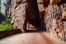 中华影视村-郭亮村是万仙山景区的核心景点,这里山势独特、谷幽崖高,村子还还可见到原汁原味的石桌、石凳、石墙、石炕等,房屋依山而建,高悬在壁立千仞的石崖之上,魅力四射,被称为“太行明珠”。通往郭亮村的路上便可见到令人惊叹的绝壁长廊,车行其中,一边是石壁,一边是悬崖,惊险万分。过了重重险路,便可见到景色宜人的郭亮村,和那立于山顶的崖上人家,充满了浓郁的乡土风情,这里也是众多影视剧喜欢的拍摄地点,拍摄过《清凉寺的钟声》、《倒霉大叔的婚事》、《举起手来》等四十多部影视剧。村中的炮楼也是当初拍摄《举起手来》而修建的,建在悬崖边上,地理位置险要,站在旁边的观景台上可俯视山门,村里的房屋亦是清晰可见。