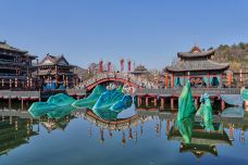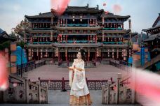 横店影视城清明上河图园区位于横店影视城南面,是以北宋张择端的经典画作《清明上河图》为蓝本而建的一处影视基地。《古剑奇谭》、《小李飞刀》、《绝代双骄》等喜闻乐见的影视作品都曾在此取景拍摄,因此,游玩时你不仅能感受宋代繁华的京都与市井,亦能在街头巷陌寻得不少古装剧中似曾相识的场景。如果运气好,还会偶遇正在拍戏的剧组。