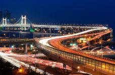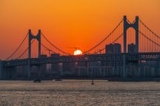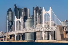 广安大桥是座位于韩国釜山广域市的悬索桥,造型优美,是釜山市的地标之一,也是釜山的一个旅游景点。广安大桥总长7.42公里,是韩国较早的一座双层大桥。 在桥上俯视下方,玲珑剔透的广安里白沙滩、海云台冬柏岛和迎月坡都尽收眼底。在这里白天可以欣赏周边的美丽风光,感受大桥的雄伟壮观,夜幕落下之后,大桥灯火辉煌,演绎出一幕幕色彩缤纷景色,引人注目。