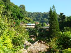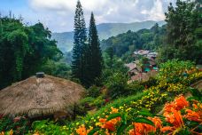 培山苗族村位于双龙寺附近,距离蒲屏宫约4公里,原为一苗族村,现已开辟成游览区。但是别指望在这里找到多少乡村生活的痕迹,这里基本上已经变成了一个旅游市场,有苗族的手工艺品和纪念品。不过就算如此,来这里看看难得一见的罂栗花也是非常值当的,这种美丽的花朵,花色鲜艳多彩,花瓣犹如绉纱,也是可怕的原料。村内还有一个村民自营的少数民族博物馆,设在具有苗族特色的茅舍中,展出苗族人的服饰、农具和日用品。另外还有傜、苗、俚苏、喀伦、拉胡、阿卡等泰北六族的介绍以及他们的生活用具和谋生器材等。