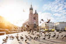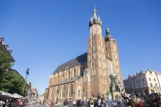 克拉科夫的玛利亚教堂是波兰较漂亮的哥特式古建筑之一,它高81米,是广场周围很瞩目的建筑,是为纪念玛丽亚所建。几个世纪以来玛丽亚教堂一直作为城市中较主要的大教堂,教堂具有典型的基督教早期教堂的建筑格调。这座建筑是用手工制作的红砖修建的,教堂的主体是14世纪末期完成的。内部装饰,塔楼以及教堂顶部的修建则花费了整整一个世纪。哥特式的塔尖是1478年完成的,而塔尖上的金冠是1666年时加上去的,它代表当时波兰女王玛丽亚的王权。塔楼也做钟楼,内有五口巨钟,一到整点五钟齐名,甚至在很远的郊区都能听到那悦耳的钟声。每隔一小时,教堂钟楼上的号手吹响一次长号。据记载,这是为纪念中世纪抵抗异族入侵的一位忠于职责、坚守岗位的号手而流传下来的。