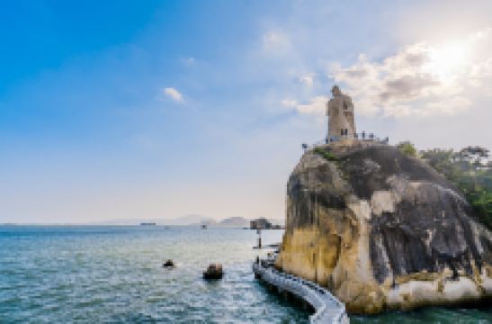 皓月园是纪念民族英雄郑成功的雕像园,这里明代风格的建筑与海景山色相辉映。郑成功的巨型花岗岩雕像矗立在覆鼎岩上,与海中的剑石、印斗石鼎足而立。