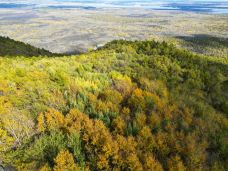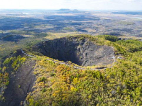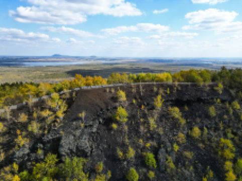 老黑山也叫黑龙山,俗称仙人山,海拔515.9米,是一座休眠火山。它是五大连池典型的火山之一,也是14座火山中高的一座。由于地貌典型,山林多由黑色浮石组成,夏天的绿色植被和冬天的皑皑白雪都掩不住它黑色的光泽,所以称为老黑山。老黑山的东、北两侧有盘山道可达山顶,山顶的火山口形如漏斗,直径约350米,深约140米,内壁陡峭,幽深不见底。火山口周围有人行步道,可俯视令人望而生畏的火山口底。老黑山的四周为熔岩台地,200多年前,火山喷发时熔岩沿白河向南流去,形成了蜿蜒10公里长的"石龙"。石龙景象举世罕见,成为老黑山的景观。远看像大海汹涌的波涛,近视则怪石嶙峋,千姿百态,如熊如虎令人震撼。奇特的熔岩暗道、熔岩空洞中钟乳石,更是如角锥如棘刺一般,紧紧贴附在洞穴的四壁,蔚为奇观。可以说,老黑山是观赏熔岩形貌的好去处。