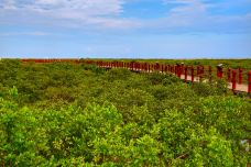 山口红树林位于北海市合浦县,与大海相连,成片生长,在我国红树林资源中十分具有代表性。这里光照充足,林内生长着红海榄、木榄、桐花树等红树林植物,林间的海水里还生活着招潮蟹、梭鱼等多种海洋动物,这里还是名副其实的鸟类天堂,栖居着树鹞、白鹤等鸟类。在景区游玩时可沿着栈道漫步其中,高一点的是固定的廊桥,走在上面看着茫茫绿海,远处天海相连,非常壮美;低一点的是浮筒栈道,踩着它穿梭在红树林之中就像穿过一条望不到尽头的绿色通道,还时不时能看到湿地里生活着的可爱鱼类、贝类等。涨潮时,水位足够了,也可以乘坐游船穿梭在这片“海上森林”之中,观察它们盘根交错、顽强而又充满生机之景。