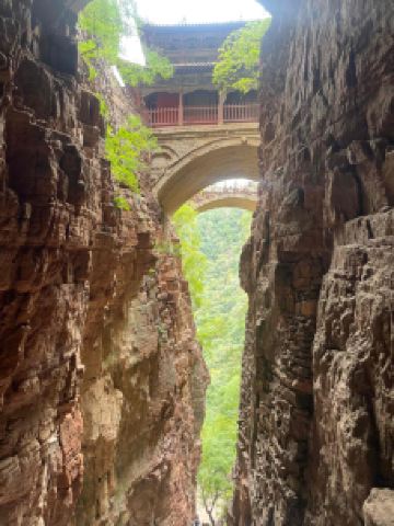 游玩这里,首先会注意到的便是这里的山势,这里有太行山景点的峭壁石崖,崖壁非常高大陡峭,而且岩壁都是赤红色,更是别具特色,适合拍照摄影。山间的古刹和寺院园林主要有福庆寺、苍岩山风景区-卧佛寺、龙岩寺、公主坟、菩萨顶、玉皇顶、銮台垴等几处,其中的福庆寺已经有1600多年的历史,古色古香,可以来此观赏拍照。另外,这里的悬空拱桥、沿山而建的悬空殿宇都非常的惊险壮观,是古建筑的杰作,可以参观、拍照。