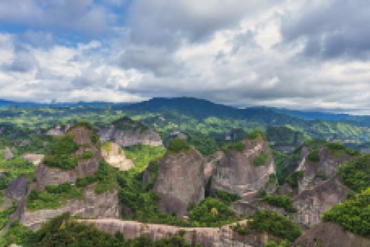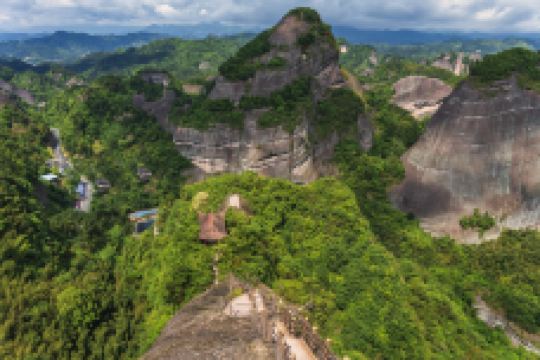 八角寨位于湖南省新宁县的崀山景区,是崀山风景区的核心景点之一,以其壮丽的丹霞地貌而闻名。八角寨被誉为“崀山之魂”。景区主峰海拔800多米,是崀山景区的至高峰。游客可以沿着1700多级石阶攀登至峰顶平台,欣赏到湖南新宁和广西资源的丹霞山峰群。这里的自然景观如同一幅动态的艺术画卷,尤其是在云雾缭绕时,山峰若隐若现,宛如“鲸鱼闹海”。