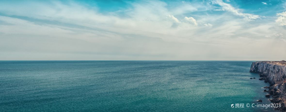 碧海蓝天,海角上的灯塔格外醒目