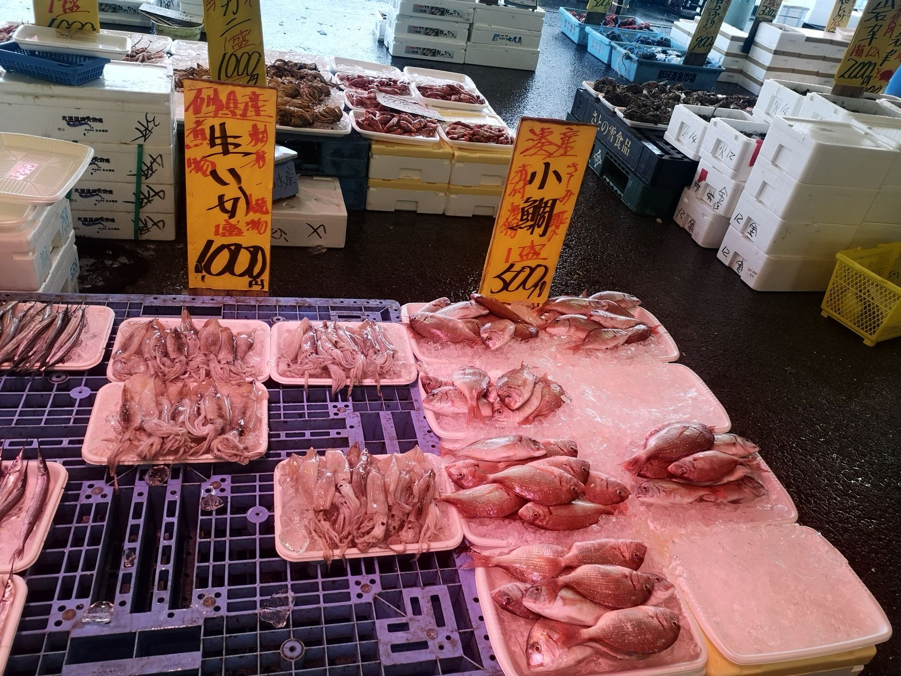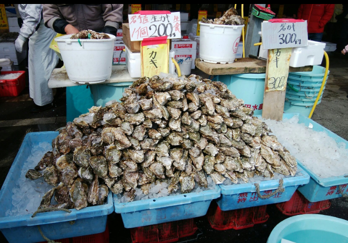nakaminato fish market是一间临海的海鲜类市场,货都非常新鲜,是许多当地人买食材的好去处,有鱼类及虾蟹等,另外也有卖现开生蠔,大多为岩手县所产,非常大颗且鲜甜无腥味,水产市场内也有附设干货罐头及小包装加工水产的超市