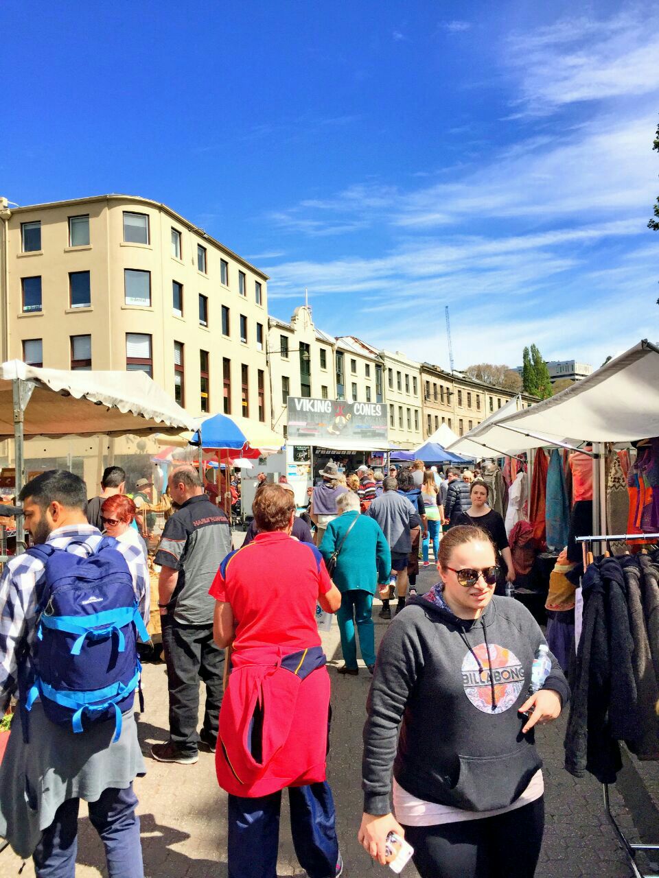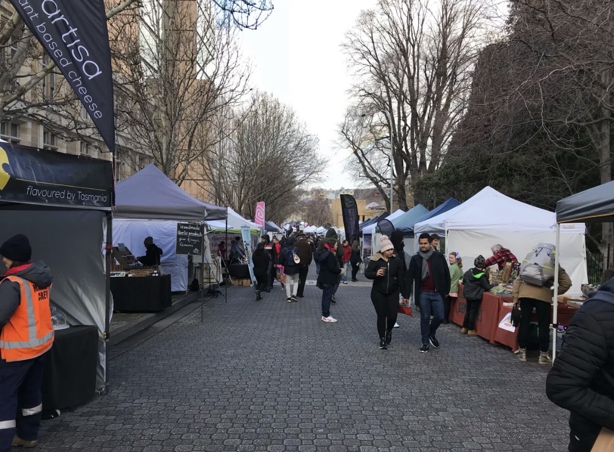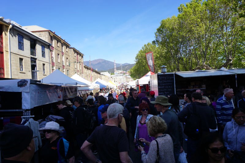 在霍巴特,应该没有人不知道这一个集市了,如果你找不到路,可以随便问一个路人,当地人都很热情,会指示你怎么过去。沿着萨拉曼卡广场,一路的摊档,商品琳琅满目,有不少的美食档口,大家买了食物,直接站在路边吃就好,可以就坐的临时座位不多。也有不少的羊毛制品、小工艺品、小古董、精美的澳大利亚特色礼品、熏衣草庄园的档口、蜂蜜园园主的档口、农场主、有机食品的档口,还有果园的档口,我去的时候是冬季,也没有多少水果,只有苹果为主,如果赶上应季的话,还有樱桃、草莓等等,都是当地产的有机水果,就连蔬菜也有好几个档口。集市现在已经成为了霍巴特市的一大特色,无论是游客还是当地人,都喜欢来这里逛逛,吃个brunch,享受一下澳大利亚的慢生活。