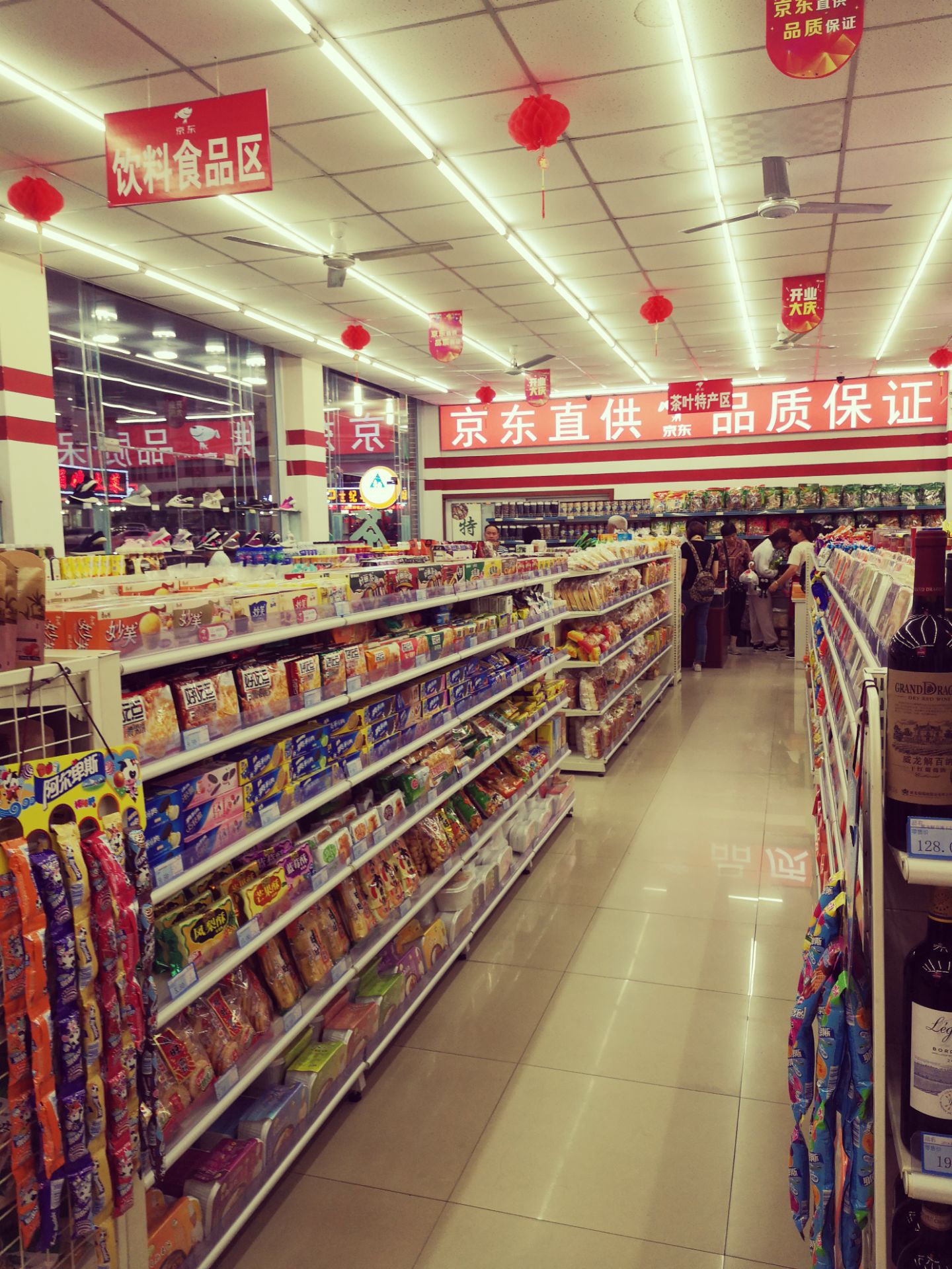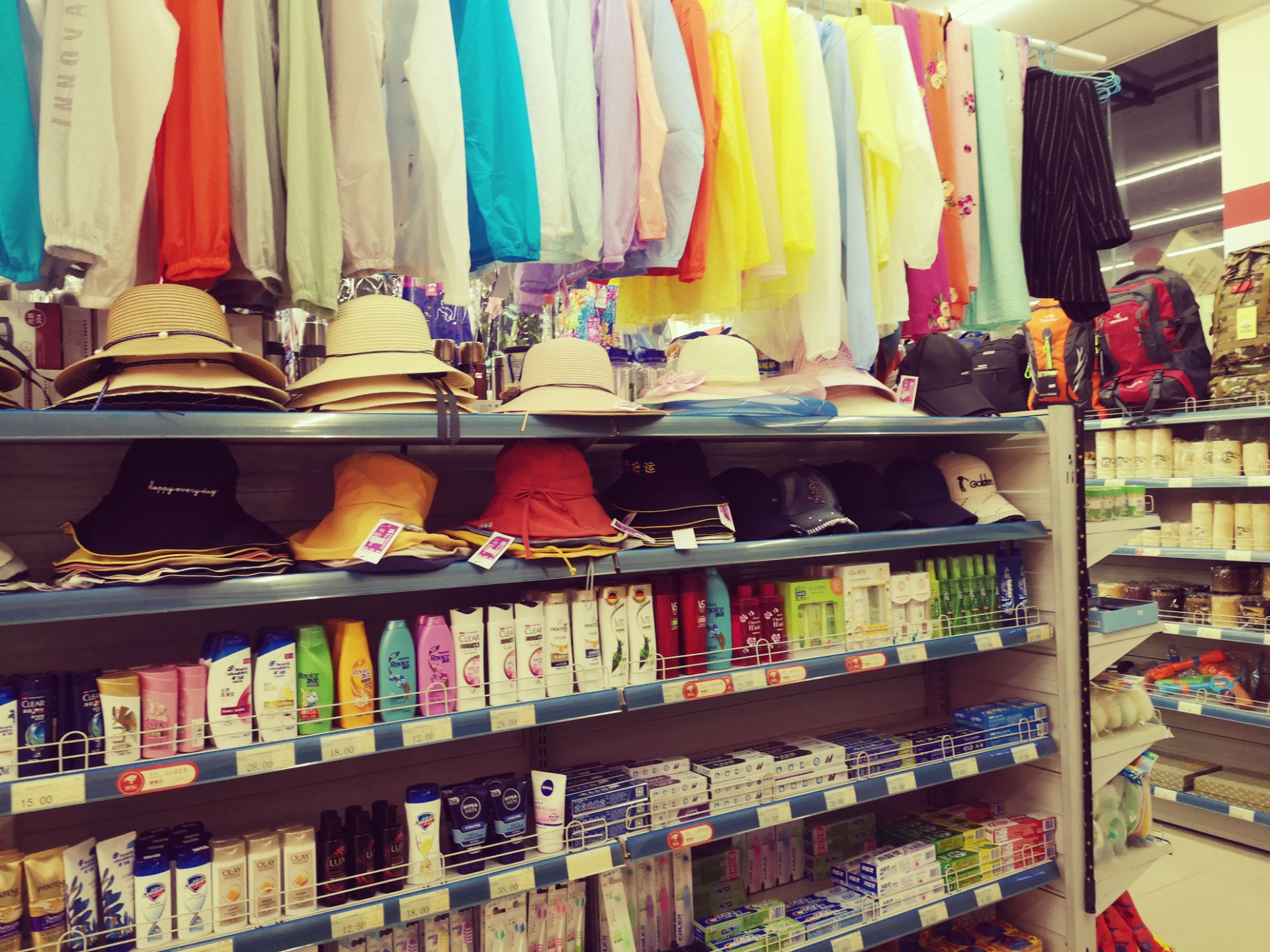 京东便利店经营面积绰绰有余,设施设备略有陈旧,旅游用品一应俱全,服务态度马马虎虎,可能要应付太多老年游客的各种咨询,有点忙不过来吧。