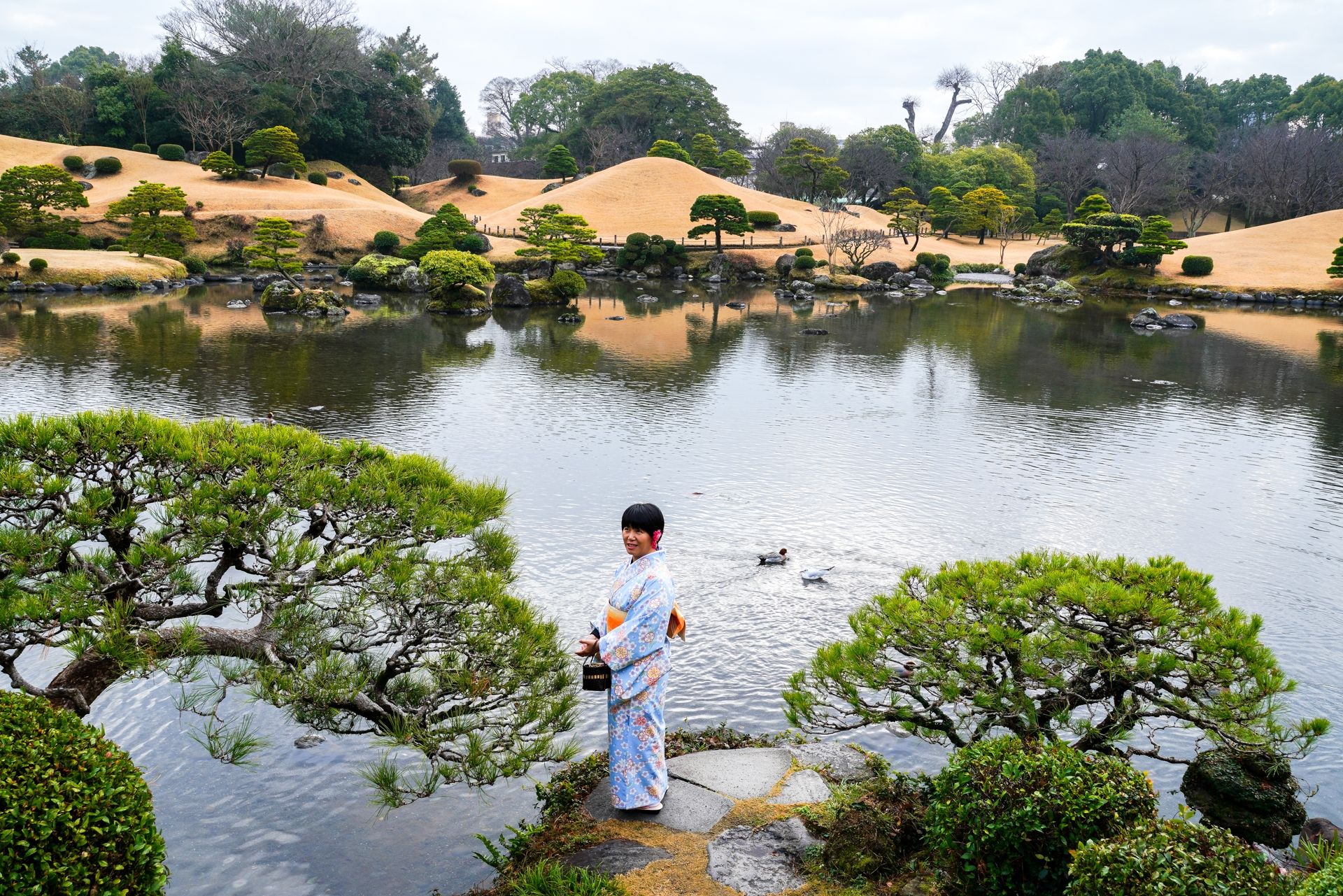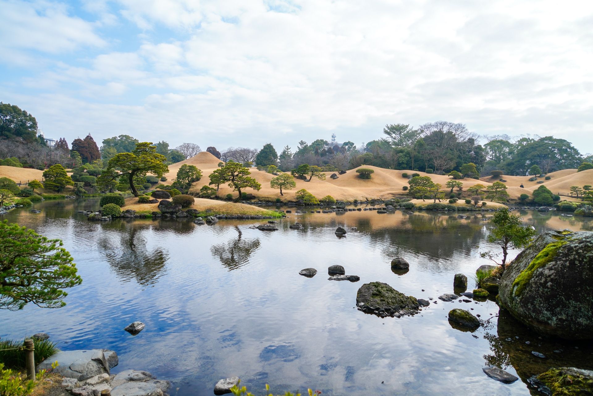 水前寺公园:是17世纪30年代由熊本藩主细川忠利历经3代建造的庭园,已被指定为国家名胜史迹。