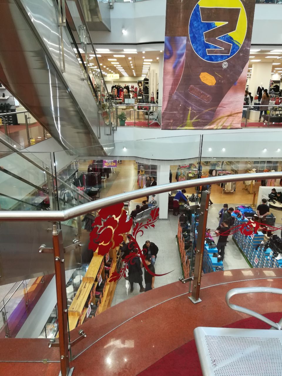 - 门口有个蒙古包,挺有特点的,一层是各种化妆品香水,有个超市,还有一个兑换外币的,二层有各种品牌的羊绒衫,住的酒店楼下也有个羊绒衫,...
