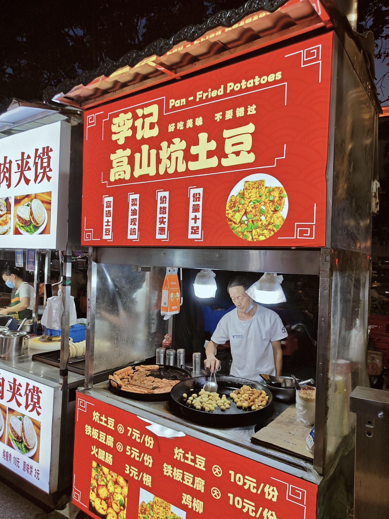 - 晚上夜市很热闹,17点后夜市一个个摆出来了。