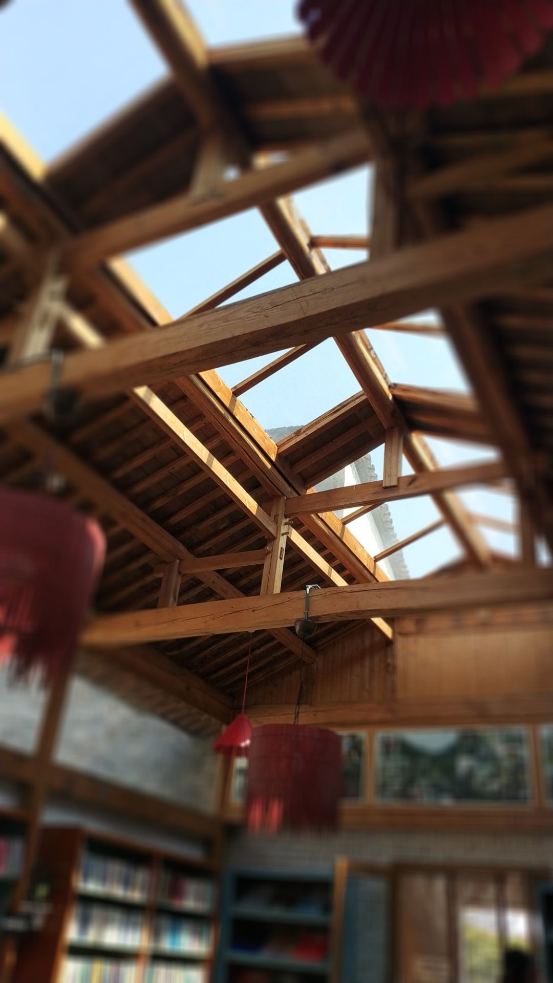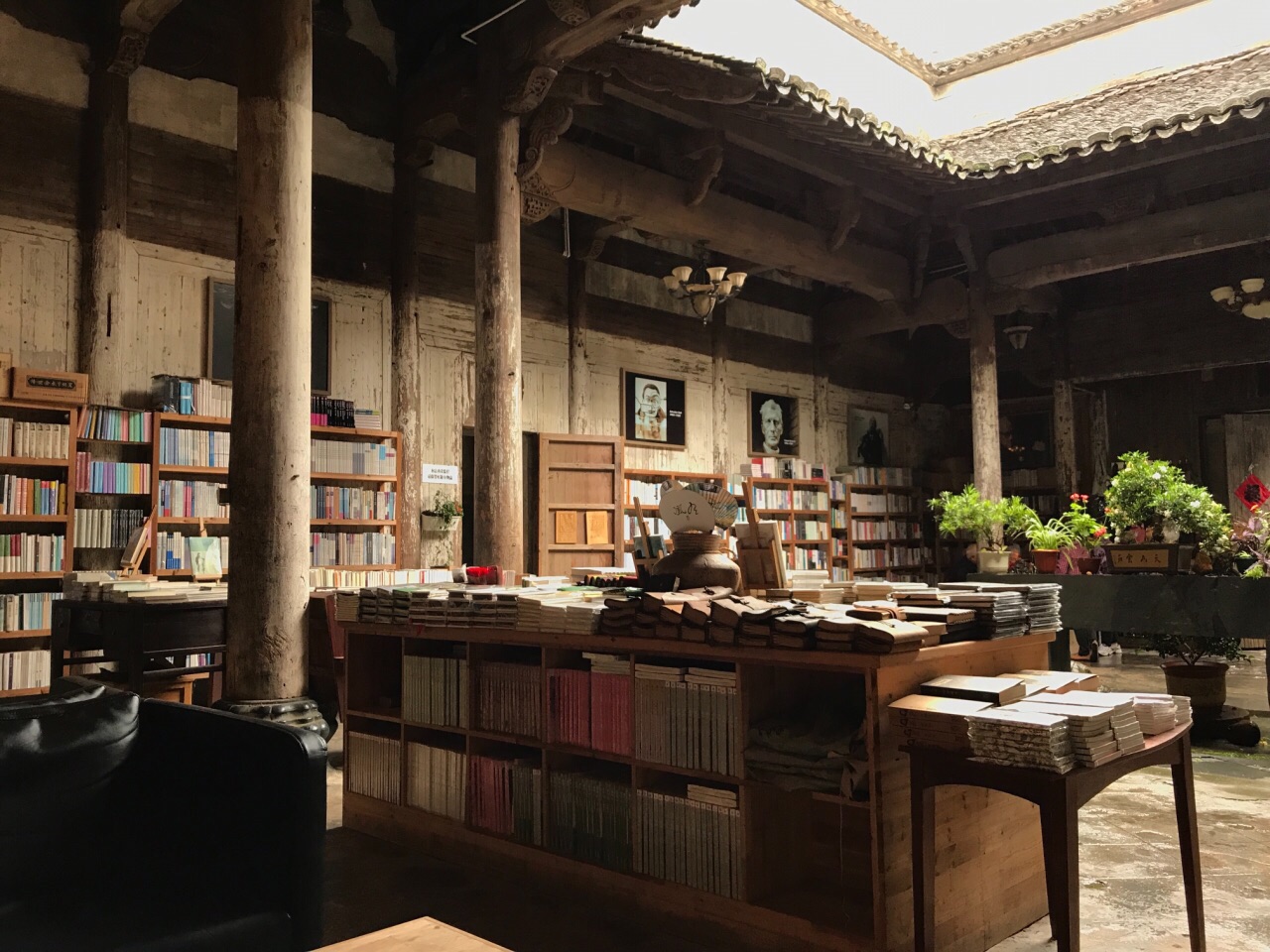 这是由一座200多年历史的明清古祠改建而成,徽派建筑围闭式院落,泥土垒叠而成的土墙,狭窄逼仄的楼梯,整个书店在岁月的洗礼下显得斑驳陆离。