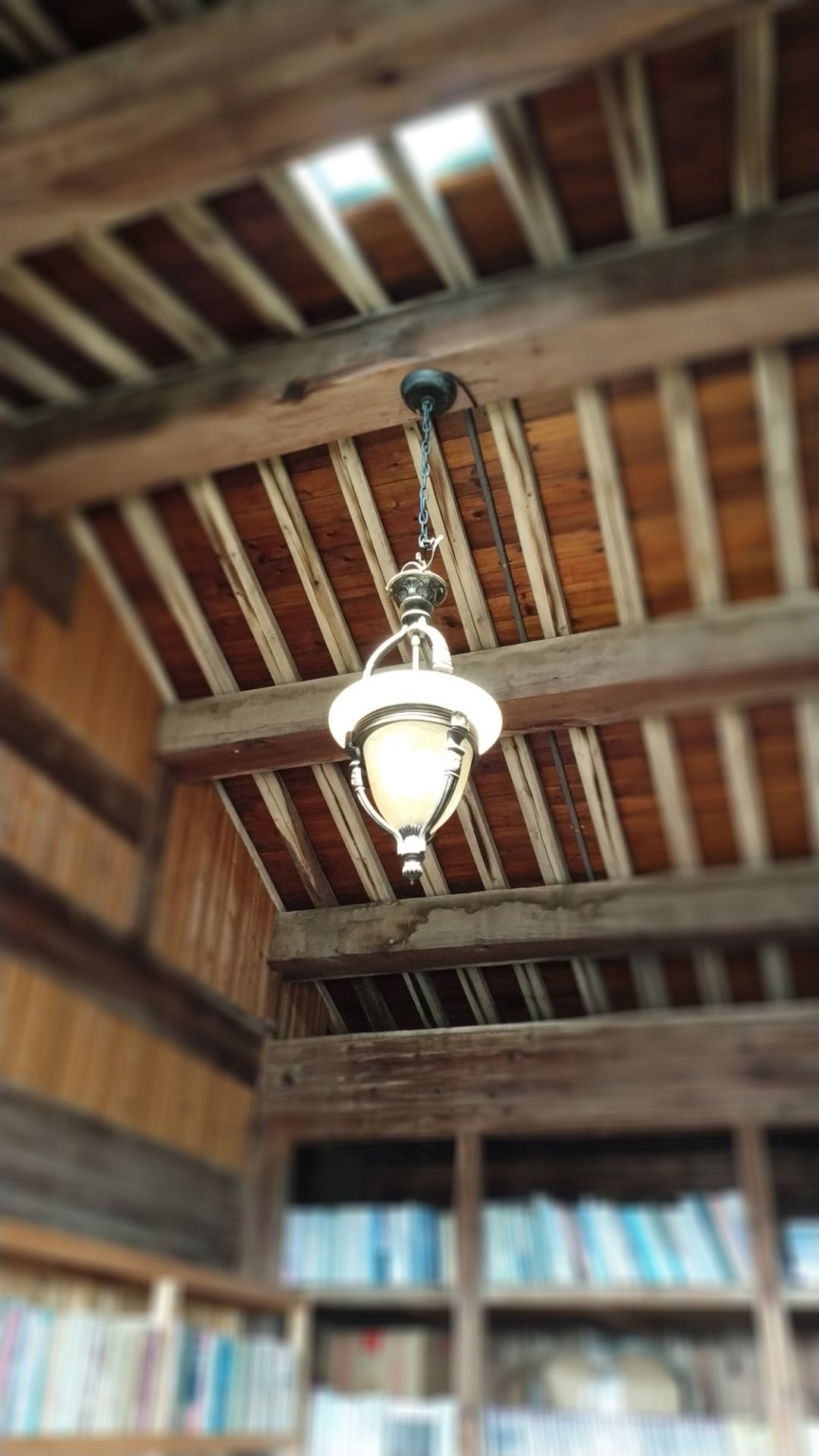 沿着陡峭的楼梯拾级而上,是通往静谧的二楼,这里陈列的古书格外有年代感。望向窗外,可以饱览碧山村的风光和远眺延绵起伏的黄山。