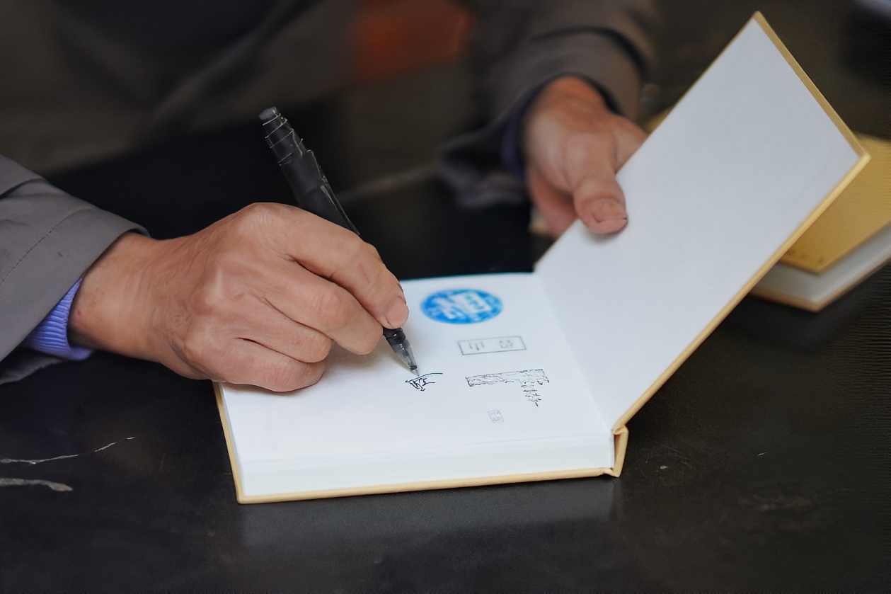 我毫不犹豫地买下了两本,如同碧山八景速写地图一样,老村长认认真真地在上头签名,并盖上了独立先锋、启泰堂、碧山、碧山书局和碧山最高的建筑,标志性云门塔5个印章。而不知情的游客并不会知道这位老人为什么在他们买的一个“普通的旅游纪念品”上写下自己的名字,老村长总是默默地做着这一切。