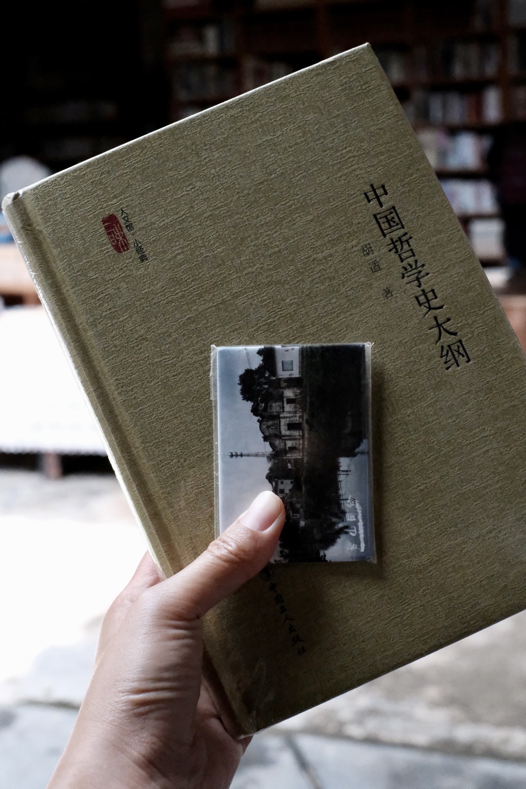 碧山书局的选书延续了先锋书店的风格,以艺术类的读本见长,偶遇一本胡适写的中国哲学史,欣然收入囊中,结账时又入手一枚碧山村的冰箱贴。
