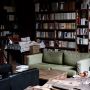 在一楼大厅,朴素的书架,混搭的复古软皮沙发,文艺的海报,复古的灯具,仿佛来到民国时期,特别有氛围感~