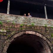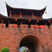 东门城楼城门下部由紫红砂岩砌成,上部城楼则用古砖砌筑,气势很雄伟,可以登上城楼远望。给人最不舒服的是城楼上不少租借衣服拍照的摊点有点煞风景,古城内穿着民族服饰拍照的游人特别多,很多人会觉得这就是旅行的意义。城墙上租衣服的价格一般要高些,其实在古城一般通价都是10元,不含租借摊点给你拍照费用,节假日更贵一些。