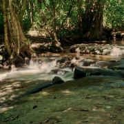 下山路和上山路有些不同,一路沿河而行,哗哗的流水下是更多密密麻麻的林迦,你会感受到千林迦河的独特。此外,山里还常能看到颜色艳丽、体型较大的蝴蝶等生物,是另一番乐趣。
