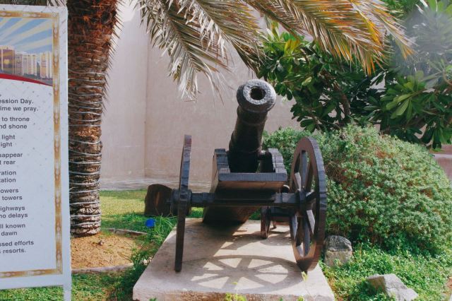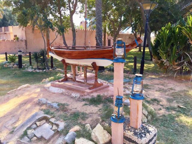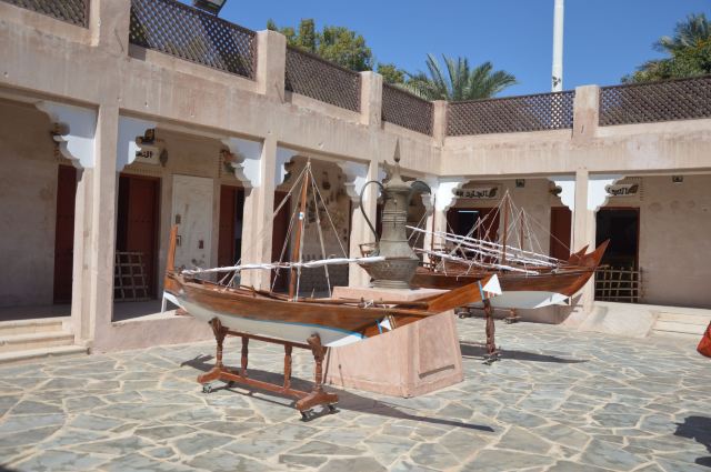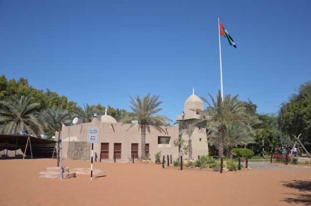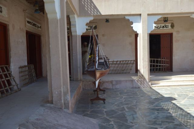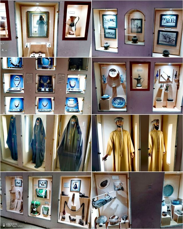 4、继续逆时针走到博物馆,里面陈列了各种阿联酋居民的日常生活用品:服饰、仿制品、首饰、陶制品、储器、鞋、餐器、书籍、笔墨、武器盔甲、纸币,以及动物标本等与生活息息相关的展品,并用老照片展示了最真实的影像。旁边的屋子有摄像师在拍摄,不让游客进,遗憾错过。