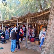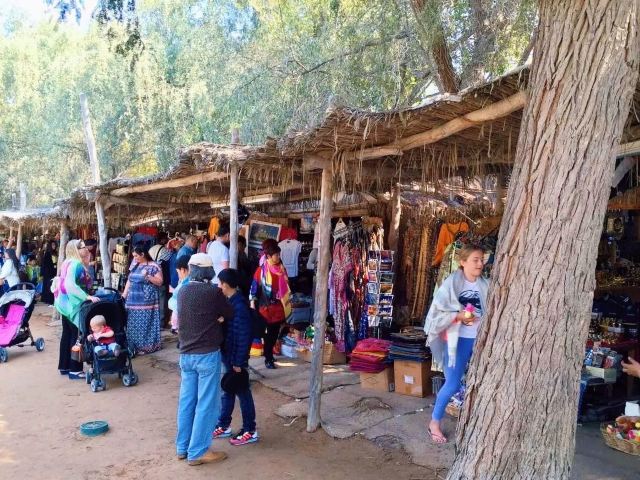 民俗村的左边是再现街道集市的小院 这些商店都是典型的阿拉伯风格的手工艺品 旁边则是再现沙漠里阿拉伯人最古老的居住环境的“茅草房” 由院落 客厅 卧室以及外面类似储物间的部分组成