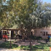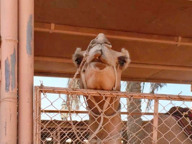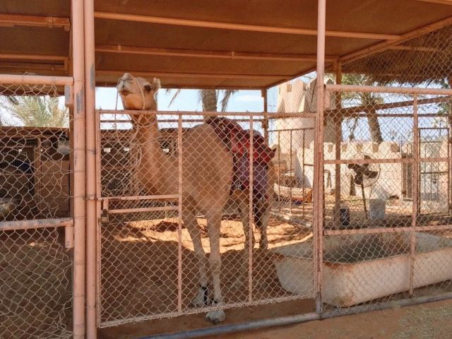 2、民俗村是一座被城墙围着的小城,城内城墙下一圈是各类可进入的阿拉伯风情建筑,我逆时针转。先途经历史艺术展示(总体介绍了阿联酋人文概况)、女子手工作坊(内部是展示阿联酋女子手工饰品的展厅,但关着门)、清真寺(进去要脱鞋,我不是穆斯林所以没进)后到达沙漠区。沙漠区形象得还原了沙漠民居的样貌,石头民居可进去参观,里面有地毯、靠枕、油灯等家具,屋外的牲口圈内有驴、马、单峰驼,人气最高。另有小井、沙漠帐篷等小景观妆点。