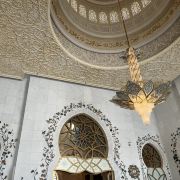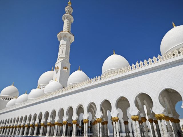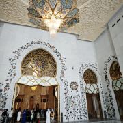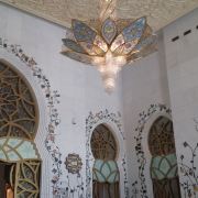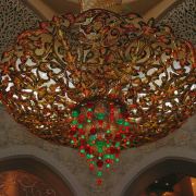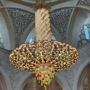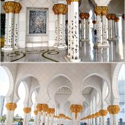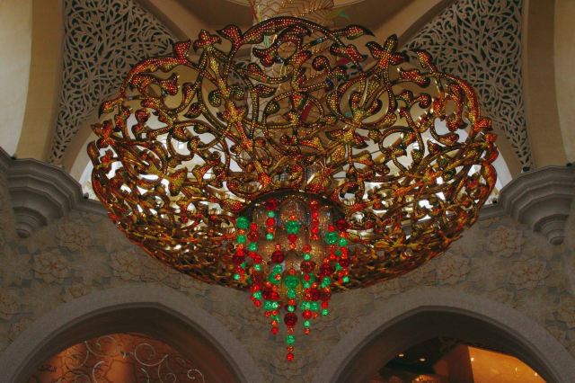 谢赫扎耶德大清真寺以华丽著称,黄金和汉白玉砖墙不计其数,水晶吊灯数万盏,据说建设总花费约55亿美元。寺中的巨型地毯和水晶镀金吊灯更是精美。