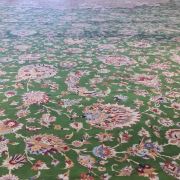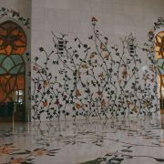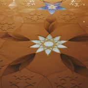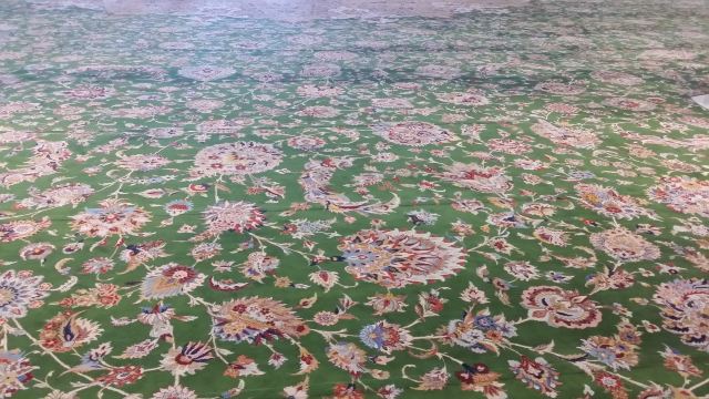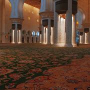 这块地毯被誉为全世界较大的地毯,大小近6000平方米,由近1200名伊朗工人耗时12个月手工织成,用的都是来自伊朗和新西兰的羊绒,光设计就花了8个月。而令人惊叹的是地毯上没有一处缝痕。踩在上面软软的,无声无息,主殿弥漫着一种恬静祥和的气氛,可让人心里顿感安宁。