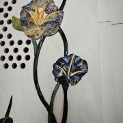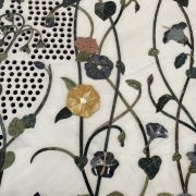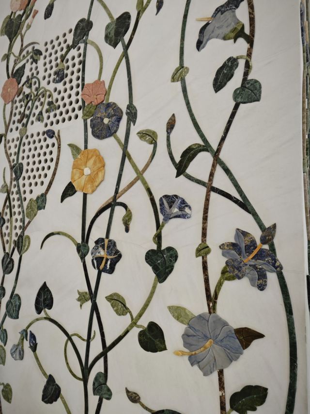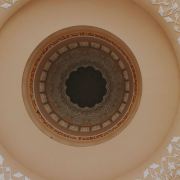 如果说白色使得这座寺院有着堪比天堂的纯净与肃穆,金色则赋予其灵动与妖娆的气质。廊柱的柱头上,点缀着镀金的椰枣树叶造型的装饰,它们像蔓藤一样向上延伸,充满生命力。墙面上镀了一层金,显得异常神圣。讲道台周身的花朵贝壳图案也因白金的点缀显得更加清丽脱俗。